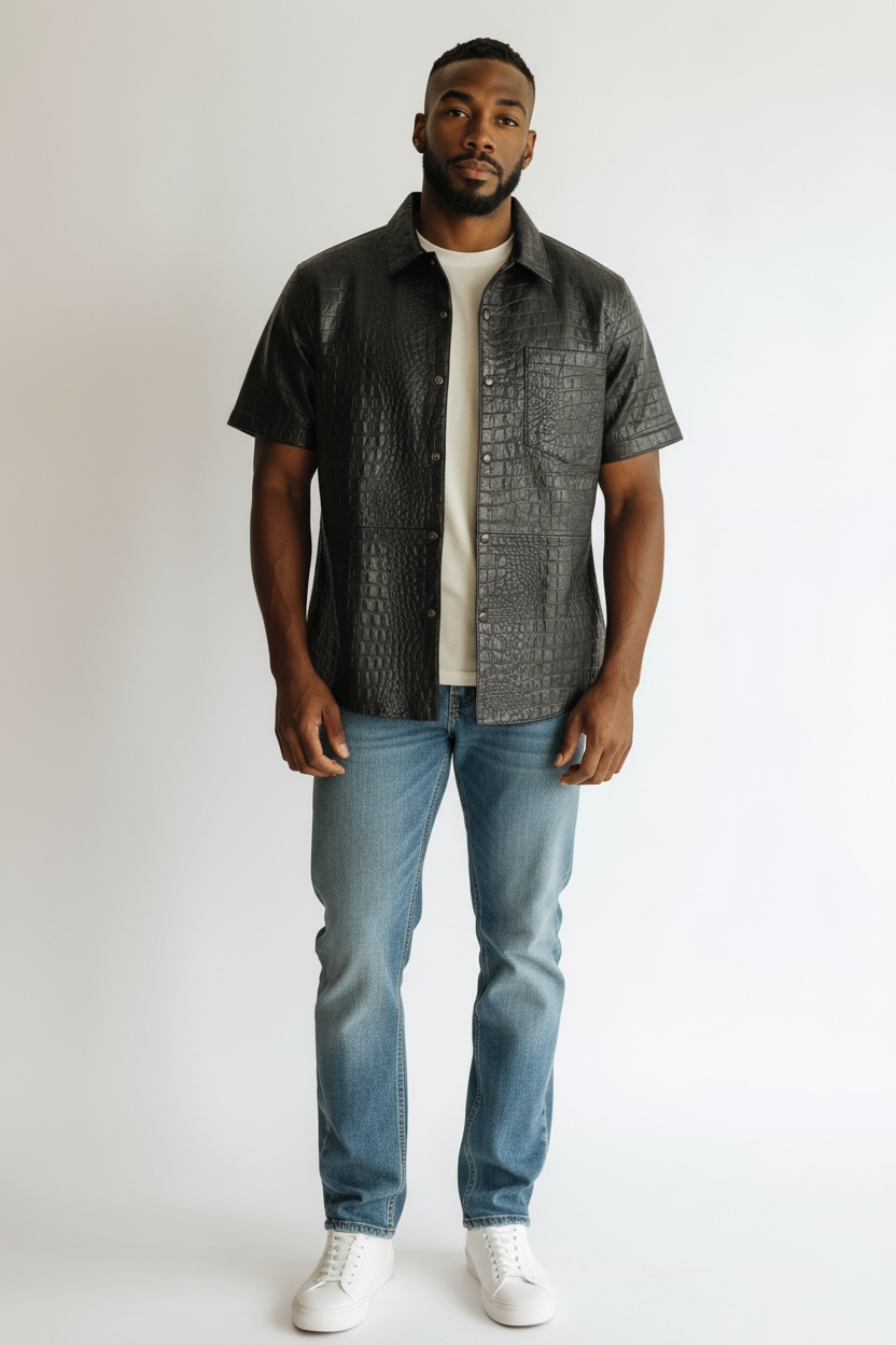 Each shirt is made from 100% genuine crocodile leather, carefully selected for its natural texture, durability, and distinct pattern—no two pieces are ever the same. Meticulous tailoring ensures a structured yet comfortable fit, blending classic button-up elegance with bold, modern edge.